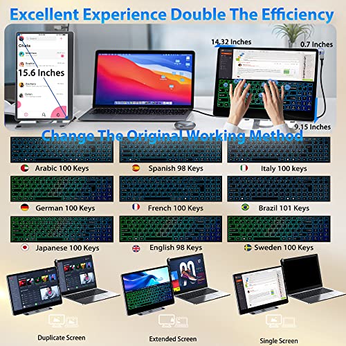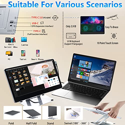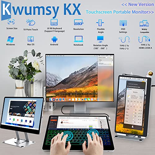 Kwumsy KX Monitor Portatile Touchscreen, 15.6" Portatile Monitor Compatible Windows/Mac/Android/Chrome, FHD 1080P Monitor Suppor Touch A 10 Punti,98 Tastiera(9 Lingue) Supporto Girevole a 360°