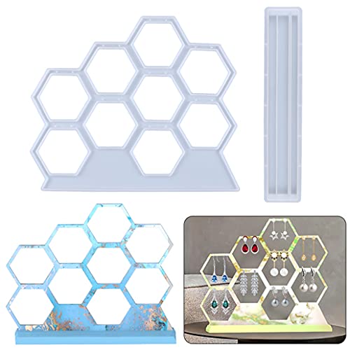 KyeeaDIY 2 Pz Orecchino Display Holder Resina Stampo con Base Stampi Epossidico Cavo Esagonale Stampo in Silicone Earring Holder Resin Mold per Ornamenti Decorazione (2 Pz)