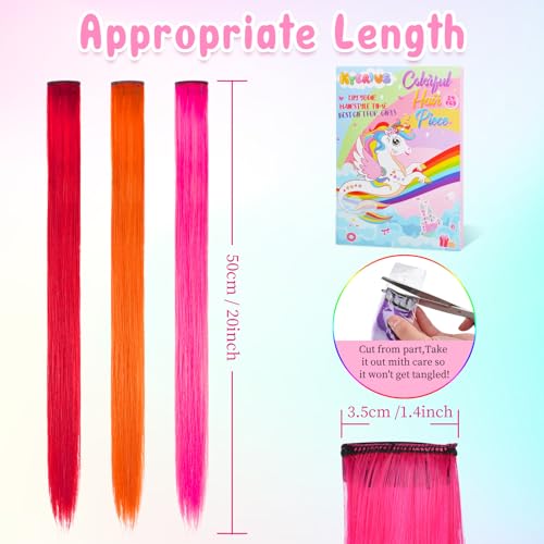 Kyerivs Colored clip in Hair extensions 55,9 cm arcobaleno resistente al calore dritto highlight Hairpieces Cospaly Fashion party per bambini Estensioni per capelli arcobaleno
