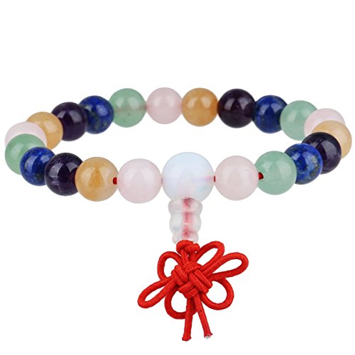bracciale da 7 pollici si adatta bene al polso da 5,5 a 7", questo bracciale con perle da 21 Mala con pietra rotonda, collana da preghiera Guru e nodi cinesi. Tutte le pietre lucidate sono avvolte con un filo elastico di alta qualità per garantire la durata e una perfetta vestibilità.