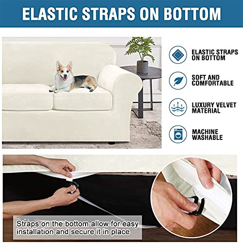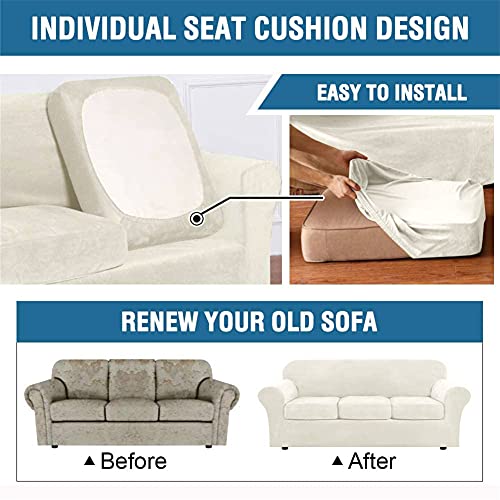 KYJSW Copridivano, Coprisedile Per Divano Elasticizzato In Velluto, Copriseduta Divano, Copridivano Con Fodera Per Cuscino Indipendente (Beige,Fodera per cuscino*3)