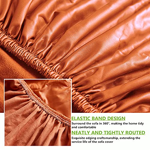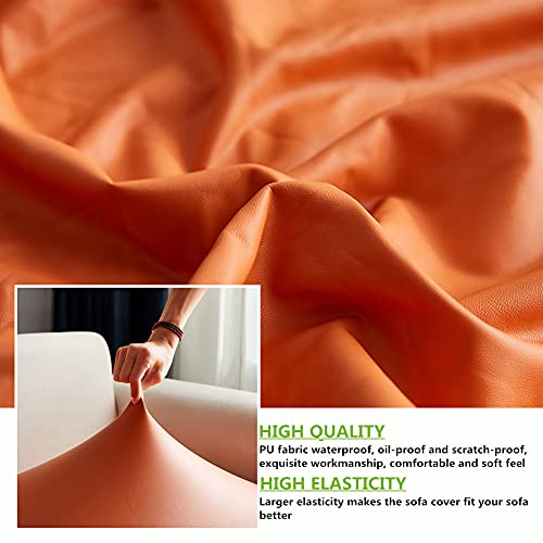 KYJSW Copriseduta Divano, Coprisedile Elastico Per Divano, Fodera Per Cuscino Antiscivolo Impermeabile In Pelle PU, Fodera Coprisedile (Arancia,Grande 1-posti)