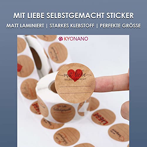 KYONANO 600 etichette autoadesive per scrivere ∅38 mm, etichette in carta kraft, fatte in casa, con amore, per bicchieri, marmellate, confezioni