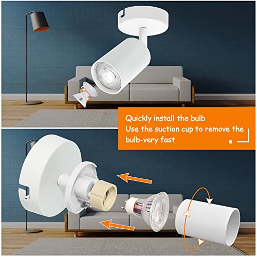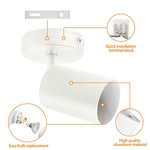 KYOTECH Faretti da soffitto orientabili a 1 luci Plafoniera LED Attacco GU10,Per 1 lampadine GU10 non incluse, Lampadario moderno per Camera Faretti Orientabili Parete Lampadine Bianco opaco