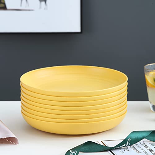 Compreso: Set di 8 piastre in plastica giallo oro 23 cm, Perfetto per pini, fuori porta, lato piscina, viaggi, campeggio. Facile da trasportare e infrangibile.