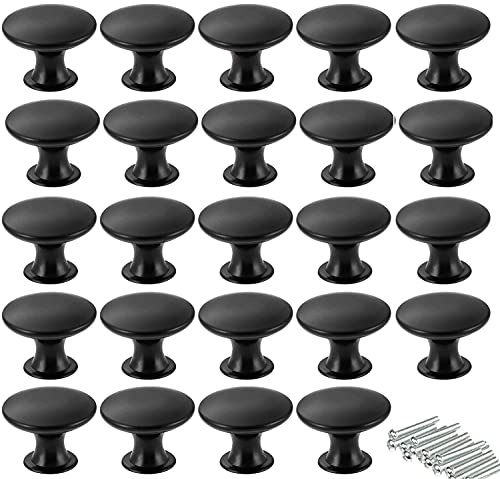 Kyrio Pomelli per cassetti, pomelli per mobili, maniglie per cassetti, in ottone anticato, diametro 30 mm, per armadietti, cassetti, cucina, 24, colore: nero