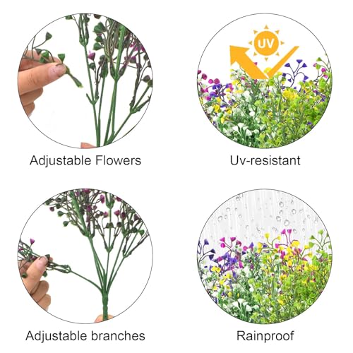 [Senza manutenzione]: i fiori di plastica per esterni sono resistenti ai raggi UV e agli agenti atmosferici, possono resistere a forti venti, forti piogge e sole, non hanno bisogno di prendere il sole, essere annaffiati o potati, il che rende la tua decorazione colorata e luminosa.