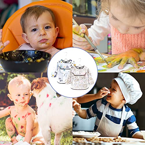 Kytpyi bavaglini neonato, bavaglini pappa svezzamento, 2 pezzi 100% EVA bavaglini a maniche lunghe rivestiti impermeabili con tasche, lacci posteriori con bavaglini regolabili in cartone animato
