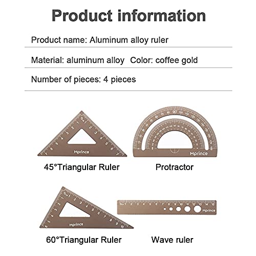 Materiale -- il set di righelli geometrici è realizzato in lega di alluminio, leggero, materiale spesso, non facile da rompere. Vita più lunga rispetto ai righelli di plastica.