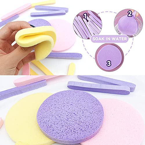 Quantità sufficiente - Le nostre spugne facciali compresse includono 48 in giallo, viola, rosa e blu. Quattro colori, 12 strisce ciascuno. Le spugne naturali hanno una certa capacità di assorbire lolio e possono pulire i pori. Una quantità sufficiente soddisfa le tue esigenze di pulizia quotidiana.