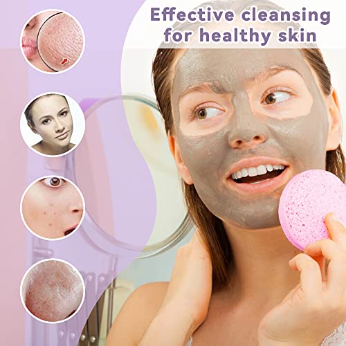 Kytpyi spugnette viso pulizia, spugna viso pulizia, spugnette trucco compressa da 48 pezzi rotonda riutilizzabile, Spugna viso per struccante per il viso, Pulizia del viso (giallo, viola, rosa, blu)