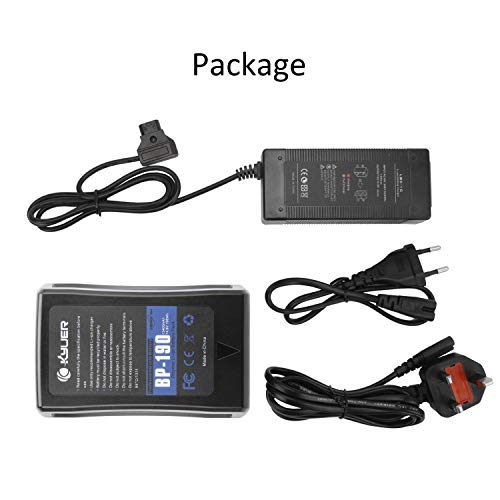 K KYUER 13400mAh BP-190 V-Mount V-Lock Telecamera Batteria and Adapter Charger for Sony Camcorder Video Camera BMCC ARRI Canon EOS AJA Cion Blackmagic URSA LED Panel Light with D-Tap Cable USB Output