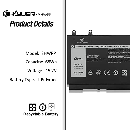 K KYUER 68Wh 3HWPP Batteria per Dell Latitude 5401 5410 5411 5501 5510 5511 Precision 3541 3550 3551 Inspiron 17 7706 15 7500 7506 2-in-1 Black Edition 10X1J N2NLL 1VY7F 3PCVM 401D9 JG75F 451-BCMN