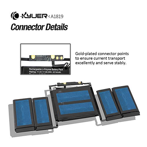 K KYUER A1819 Batteria per MacBook Pro 13" 13.3"A1706 Retina Late 2016 Mid 2017 Version Touch Bar EMC 3071 EMC 3163 MLH12LL/A MLH12D/A MPXV2LL/A MLVP2LL/A MNQF2LL/A MNQF2HN/A MNQG2LL/A 49.2Wh 4314mAh