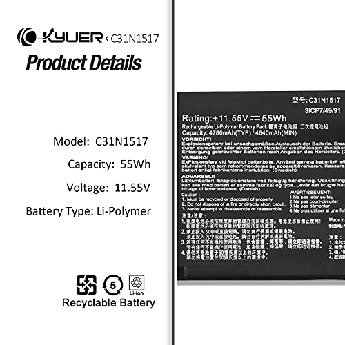 K KYUER 55Wh C31N1517 Batteria per ASUS VivoBook Flip Q304 Q304U Q304UA Q304UAK Q304UJ Q304UAKP Q303U Q303UA TP301 TP301U TP301UA TP301UJ TP301UAK TP301UA-DW009T TP301UA-DW010T TP301UA-DW066T Battery