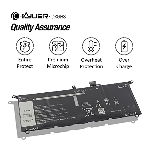 K KYUER 52Wh DXGH8 Batteria Replacement per dell XPS 13 9370 9380 7390 2019 Inspiron 13 7000 7390 7391 7490 5390 5391 Latitude 3301 E3301 Vostro 13 5000 5390 5391 P82G001 P113G001 Notebook Battery