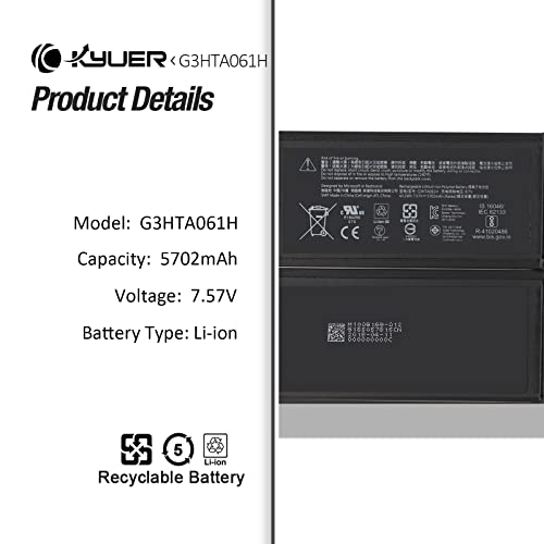 K KYUER G3HTA061H DYNM03 Laptop Batteria per Microsoft Surface Pro 7 (Model 1866, 2019) 12.3" Touch Screen 2-in-1 Detachable Tablet PVR-00016 VDV-00015 VDV-00001 VDV-00006 43.2Wh 5702mAh with Tools