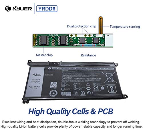 K KYUER 42Wh YRDD6 Batteria per Dell Inspiron 3480 3481 3482 3490 3493 3590 3593 3595 3580 3581 3582 3583 3584 3585 3780 3781 3782 3785 3790 3793 5481 5485 5488 5491 5493 5590 5591 5593 5594 5598
