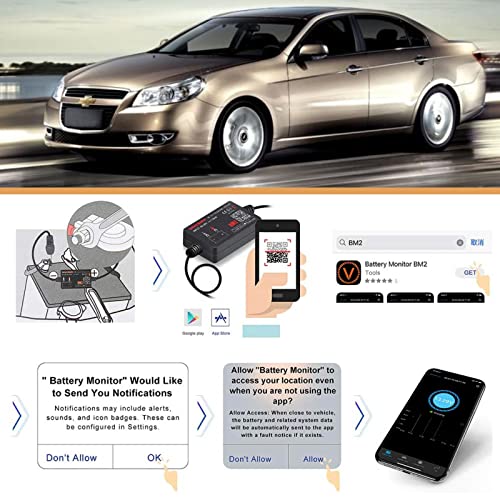 【TESTER BATTERIA 12V】 Con Bluetooth 4.0, l'app gratuita Battery Monitor BM2 può connettersi con la batteria in millisecondi. Inoltre, la notifica in tempo reale ti avviserà quando la batteria si sta scaricando con letture accurate della tensione, che puoi controllare comodamente sul tuo telefono.