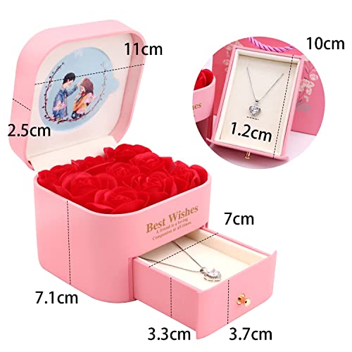 KYYLZ Rose Stabilizzate,Rosa Eterna Regalo Donna Confezione Regalo di Gioielli Collana Biglietto di Auguri Regalo per Festa della Mamma per Lei Coppia Fidanzata Moglie Mamma Anniversario Compleanno