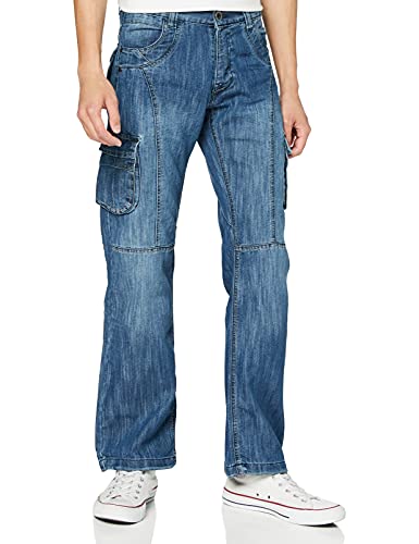 Enzo KZ103 Jeans Straight, Blu (Mid Stonewash Blu), W36 / L34 Uomo
