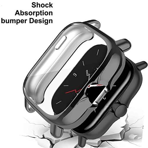 KZIOACSH [2 Pezzi ] Cover per Amazfit GTS 3 / Amazfit GTS 2 / Amazfit GTS 2e + Pellicola Vetro, Custodia per TPU Proteggi Schermo [Copertura Completa] Vetro Temperato-(Nero + Bianco)