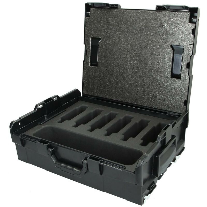 Il robusto L-Boxx è dotato di un inserto in schiuma con scomparti per sei mascelle e il morsetto di ribaltamento. l'inserto in polipropilene espanso (epp) nel coperchio consente di mantenere il contenuto in sicurezza. con le clip sui lati della scatola, qualsiasi numero di L-Boxx può essere cliccato insieme per trasportarle simultaneamente. Dimensioni: 378 x 310 x 101 mm all'interno Dimensioni: 442 x 357 x 151 mm Colore: Nero
