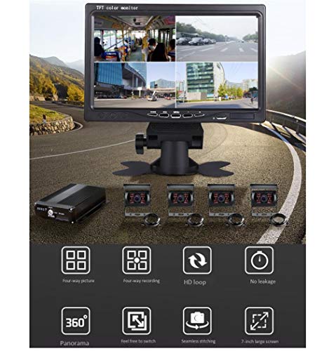 L-CAM Kit Telecamera di Backup per Monitor, 7 Pollici di retromarcia a 4 Vie + Telecamera a infrarossi Impermeabile IP69 Vista Posteriore, Bus/Camion/Camper