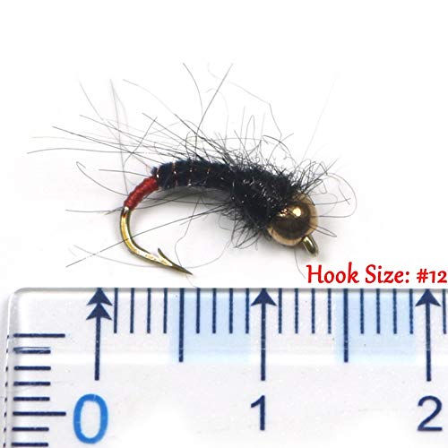 L-MEIQUN, 8PCS Brass Bead Head Nero Fagiano Coda Fiume NINFA Mosche Trout Fishing Fly Esche # 12