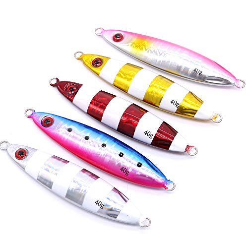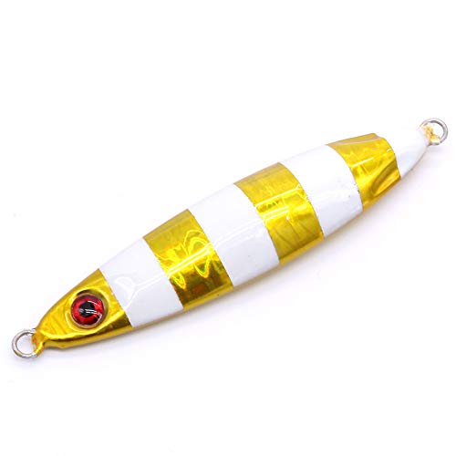 L-MEIQUN, 1pc 40g 60g Lento Blatt Fusioni Ampia Shore Jigging Luminoso Metallo Jig Pesca Cucchiaio richiamo Duro di Pesca Casting Jig Esche (Colore: Gold Glow Zebra, Taglia: 60 g)