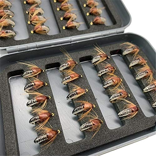 L-MEIQUN, Mosche da Pesca a mosca-24-48 Pezzi volano Mosche da Pesca Viola-bagnate Mosche, NINFA, Scud con Scatola (Colore: 36Pcs)