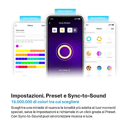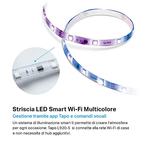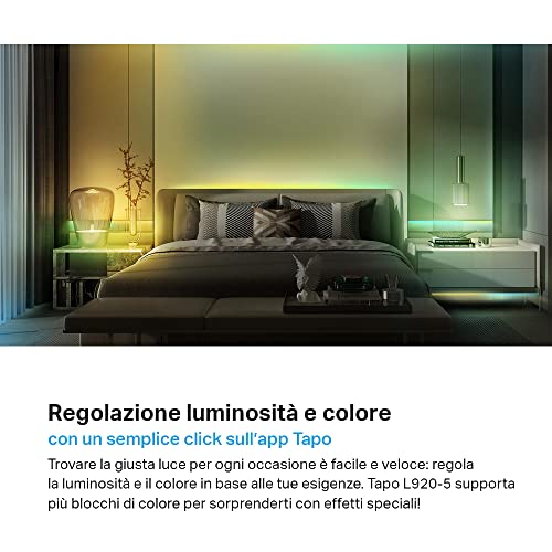 【NESSUN HUB RICHIESTO】Installazione e gestione intuitiva grazie alla comoda app Tapo per dispositivi Android e iOS. Collega L920-5 alla rete Wi-Fi e sei subito pronto a personalizzare i tuoi ambienti