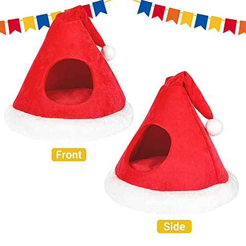 Laamei Cuccia per Gatti Cani di Natale a Forma di Albero di Natale Nido Natalizio Caldo Gatto Cane Morbido Comodo Lettino per Animali Domestici(Rosso Cappello di Natale,M 45 * 45 * 48cm)