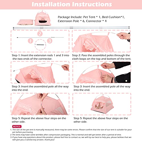 Laamei Tenda per Animali Domestici Tenda da Campeggio Cuccia per Cani Gatti Piccoli Portabile Pieghevole Ideale per Viaggi Campeggio attività all'Aperto per Interni/Esterni (Rosa,50×50×46CM)
