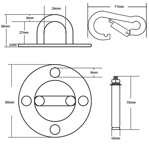 ✔ Diametro: 90 mm. Peso: circa 840g, portata fino a 300 kg. Attacco solo su soffitti in calcestruzzo o travi in legno con materiale di fissaggio attaccato.