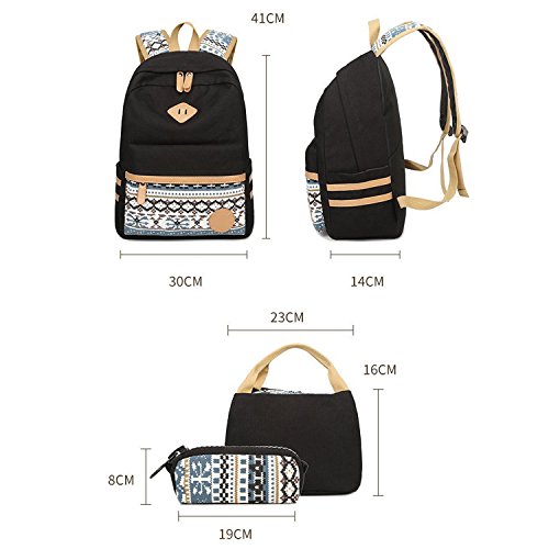 Lababe, set per ragazze in tela, composto da zaino leggero portaPC, borsa da spalla e astuccio A-