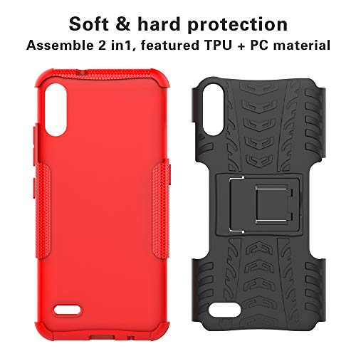 Labanem Cover con LG K22, Kickstand Dual Layer Ibrida Rigida Morbido Armatura Resistente agli Urti con Supporto e asportabile di Protezione per LG K22 - Rosso