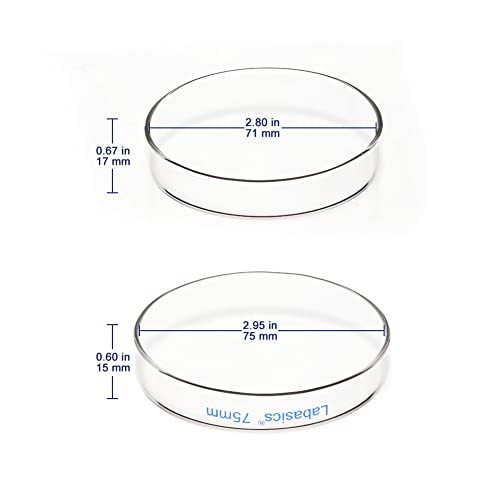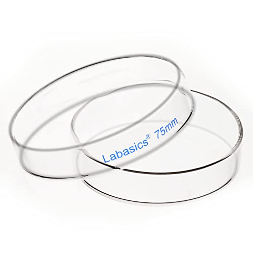 Labasics Piastre di Petri in Vetro 10pk, 75x15 mm Piastre Petri per Colture Cellulari in Vetro Borosilicato Autoclavabili con Coperchio Trasparente per Laboratorio