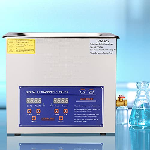 Labasics Pulitore ad Ultrasuoni, Pulitore ad Ultrasuoni Acciaio Inox Professionale Multiuso con Timer Display Digitale e Controllo del Calore per Laboratorio 220V, 6.5L