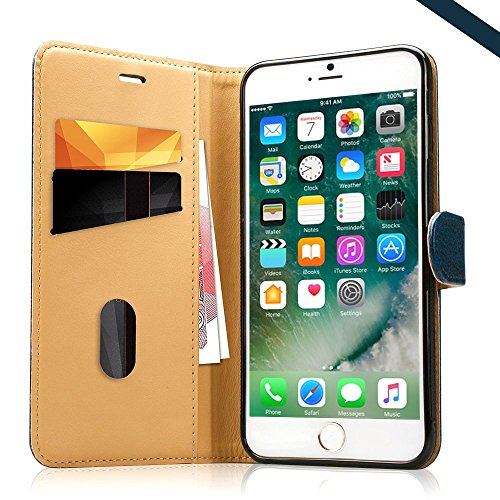 Labato - Custodia per iPhone 8, iPhone 7, realizzata a mano, in pelle, con supporto magnetico, per iPhone 8, iPhone 7, colore: Blu vintage Lbt-IP7-01Z46