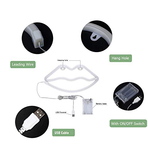 ☆ Due modalità Alimentazione: ENUOLI neon USB luce possibile utilizzare il cavo USB, anche le luci rosse labbra possono utilizzare batterie 3 * AA (batteria non includere). Hai solo bisogno di scegliere un modo per accendere la lampada al neon e poi si può godere della splendida luce del neon illumina segni.