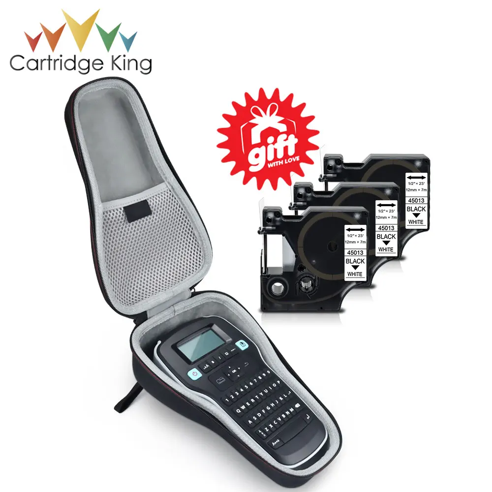 12mm Label for Dymo D1 45013 Black on White With LabelManager 420P LM420P Label Printer Hard Case Protective Storage Bag Shell