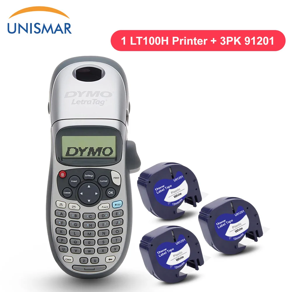 DYMO Label Machine DYMO LetraTag LT-100H Label Printer with 12mm Black on White Plastic 91201 Label Ribbon for DYMO Label Maker