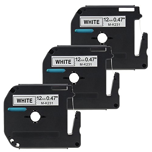 3 Pack Labeling Tape M-K231/MK231/MK-231BZ /12mm x 8m Nero su Bianco Nastro non Laminato Nastri per Etichette Compatibile per Brother P-Touch PT80 PT80SCCP PT85 PT90 PT100 PT110 PT55BM PT55S PT65 PT65SB PT65SCCP PT65SL PT65VP PT70