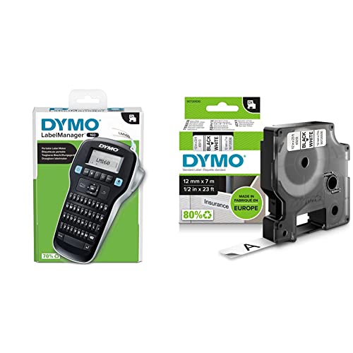 DYMO LabelManager 160 Etichettatrice portatile | Stampante per etichette a trasferimento termico & D1 Etichette Autoadesive per Stampanti LabelManager, Rotolo da 12 mm x 7 m