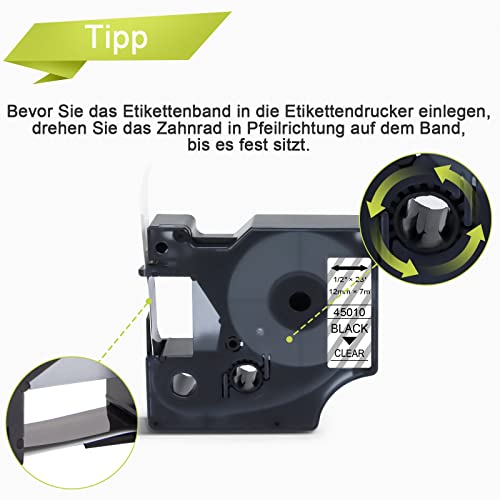 Contenuto della confezione: (Non OEM) 20 X compatibile con dymo 45010(S0720500) nero su trasparente dymo d1 12 mm x 7 m