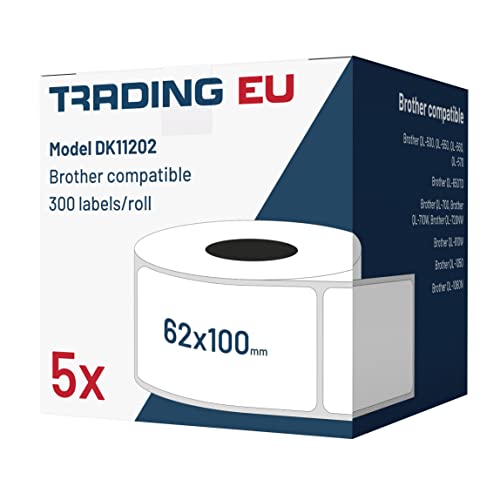 LabelTrade per compatibile conadatto a destinato a Brother DK11202 62 x 100 mm 300 etichetta +1x supporto riutilizzabile (5x)