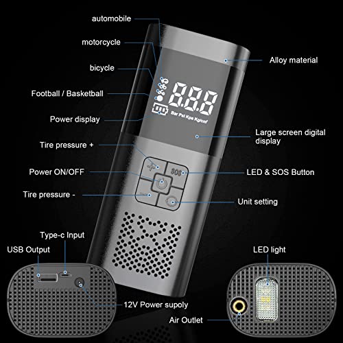 Labtec Compressore Aria Portatile con Batteria da 6000mah, Gonfiatore Elettrico Portatile Max 150psi per Bicicletta con Luce LED per Auto Moto Palla, Pompa per Bicicletta