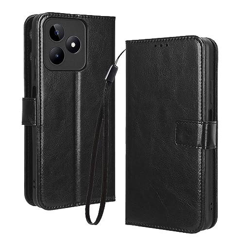 LACAE Adatto per Cover Realme C53, Custodia a Portafoglio in Maturo e Stabile, Con Sportellino chiusura magnetica e Porta Carte, Anticaduta Antiscivolo, nero