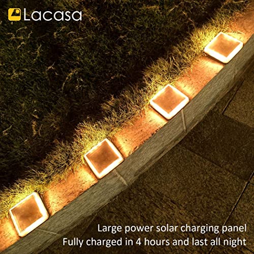 Lacasa Luci Solari da Giardino, LED Lampada Solare da Esterno, Auto On/Off Luci per Sentieri per Ponte Dock Passo Vialetto Passerella Percorso Scale Piazza Cortile - Bianco Caldo 4 Pezzi